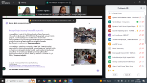 ✅ We would like to inform you that on October 29 and 31, participants of the study visit to Romania, Lilit Khachatryan (“NGO Center”) and Vanik Arakelyan (“Evergreens” NGO), conducted online courses on “Promoting Youth Civic Engagement” and “Climate Change and Youth Engagement”.